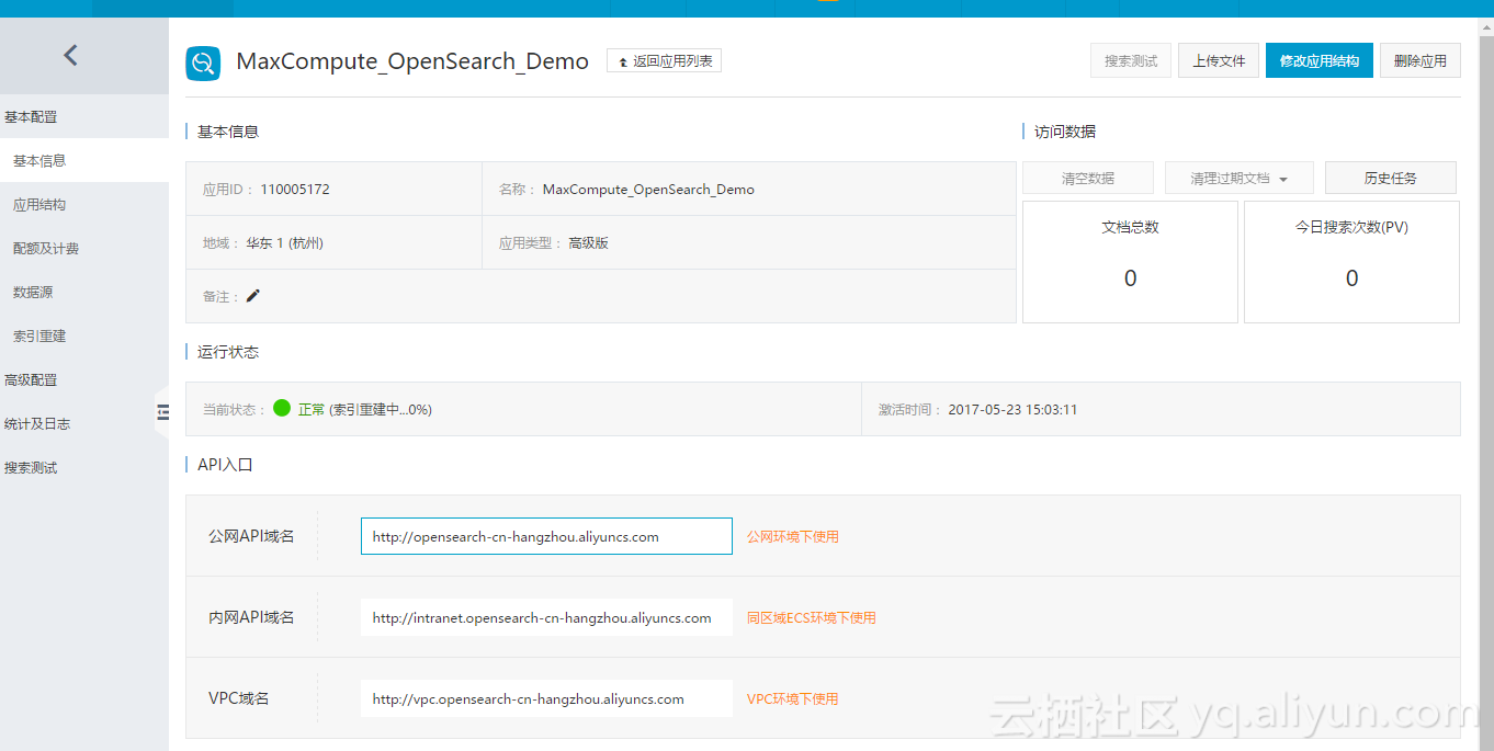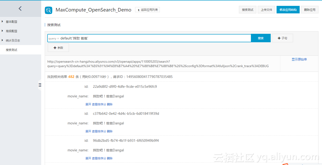 2、用OpenSearch 创建应用,配置数据/索引结构、分词;