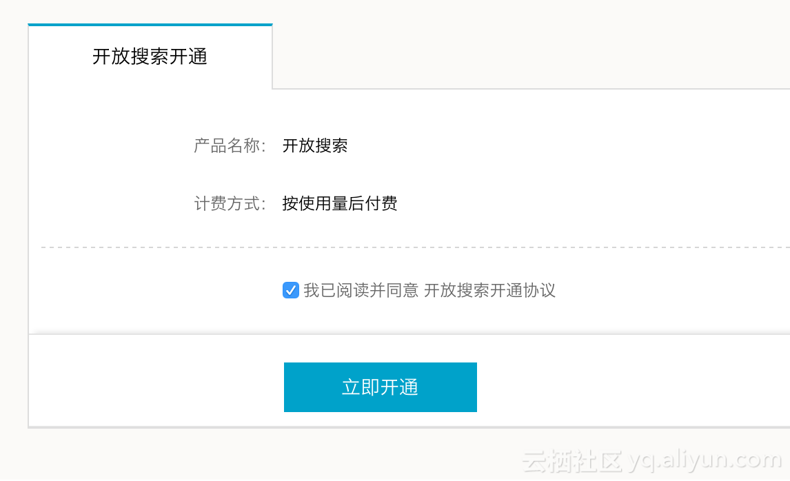 访问www.aliyun.com/product/ope…,点击立即开通,选择后付费(按量付费)。