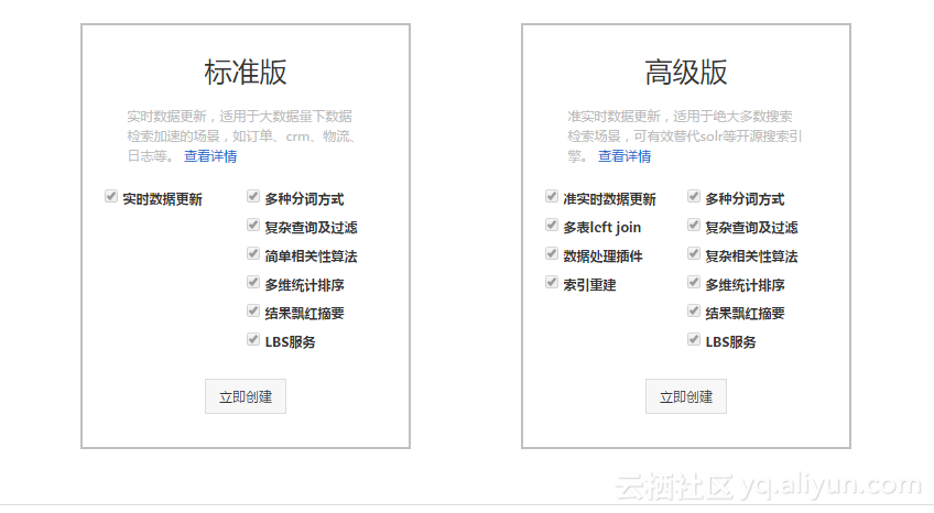 3.2 选择产品版本,笔者开通的是标准版。如果需要多表关联搜索,请开通高级版,如果是单表查询,标准版就可以。