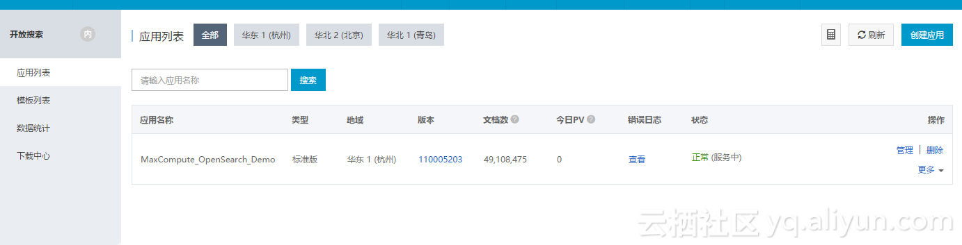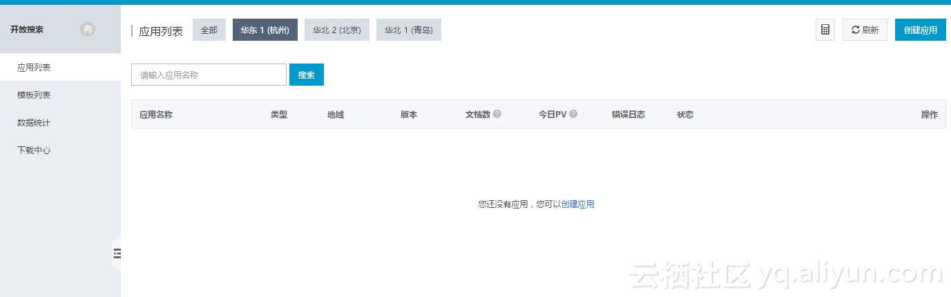 3.1 进入OpenSearch控制台,点击“创建应用”