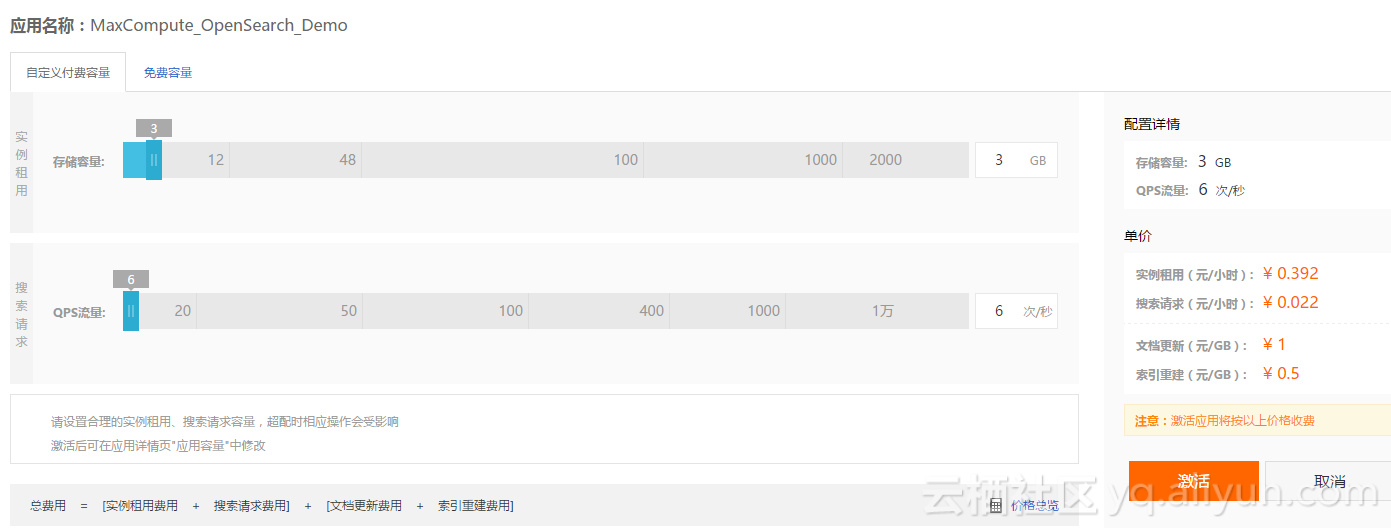 3、开通MaxCompute、OpenSearch 后付费服务。
