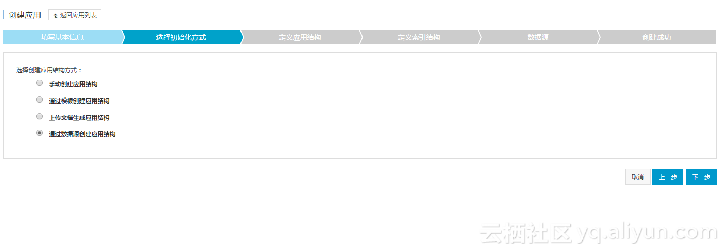 3.4 选择“通过数据源方式创建应用结构”。可以快速由源表结构创建出初始的应用结构,节省手动构造的工作量,降低出错概率。