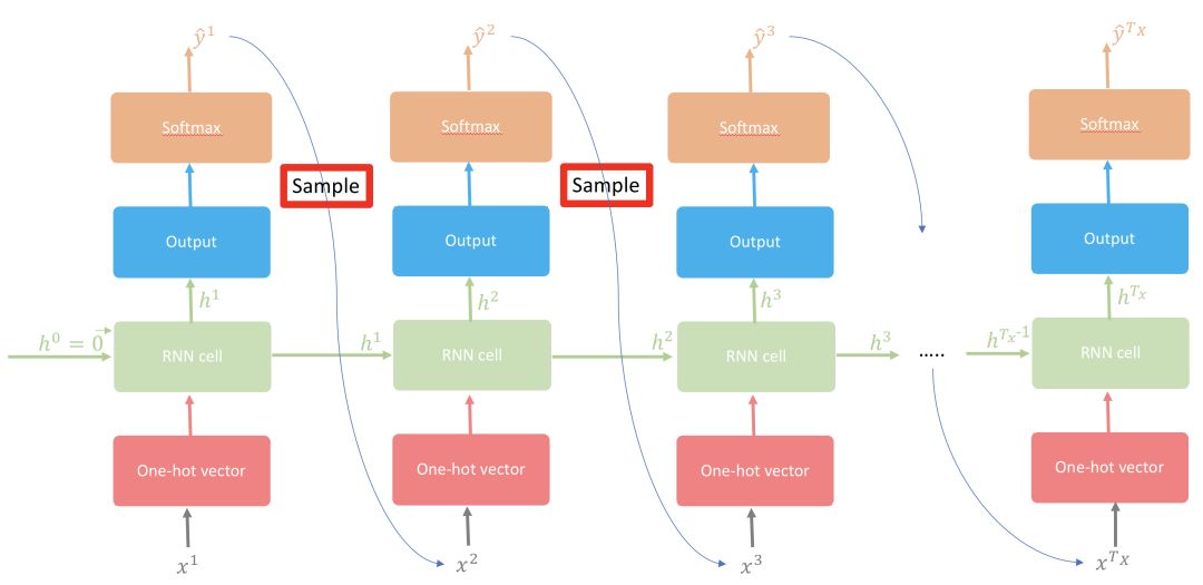 将目标字符 y^t 作为下一个输入 x^t+1,直到完成该序列。
