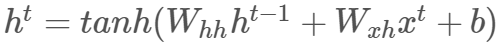 hs[t] = np.tanh(np.dot(Wxh, xs[t]) + np.dot(Whh, hs[t - 1]) + b)