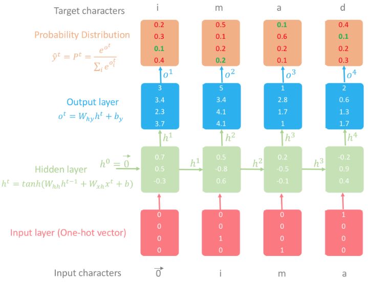 图 2:使用 RNN 的字符级语言模型图示。