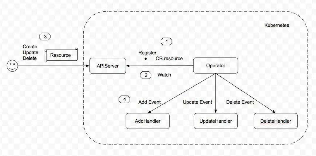 Operator 是 CoreOS 公司提出的一个概念,用来创建、配置、管理复杂应用,由两部分构成: Resource