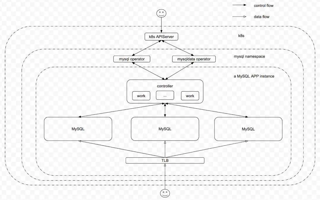 - 每个 MySQL 集群的控制管理 全局控制管理主要负责「创建/删除集群」「管理所有 MySQL 集群状态」等,基于 Operator 的理念来实现。每个 MySQL 集群有一个控制器,负责该集群的「任务调度」「健康检测」「故障自动处理」等。