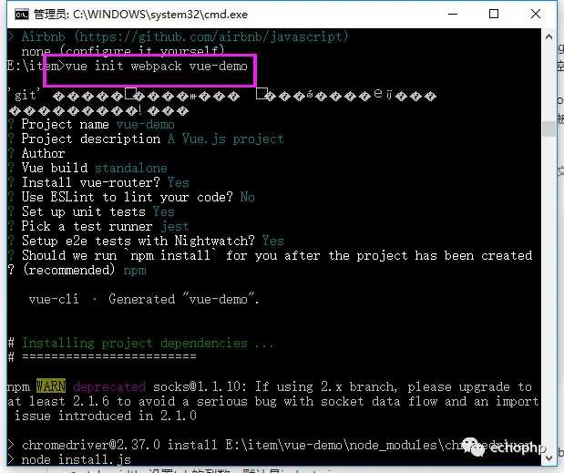vue init webpack vue-demo