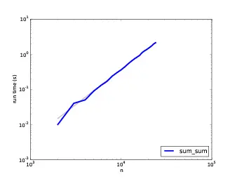 在图 a.3 中,斜率 2 的线拟合了数据,所以sum实现是二次的。