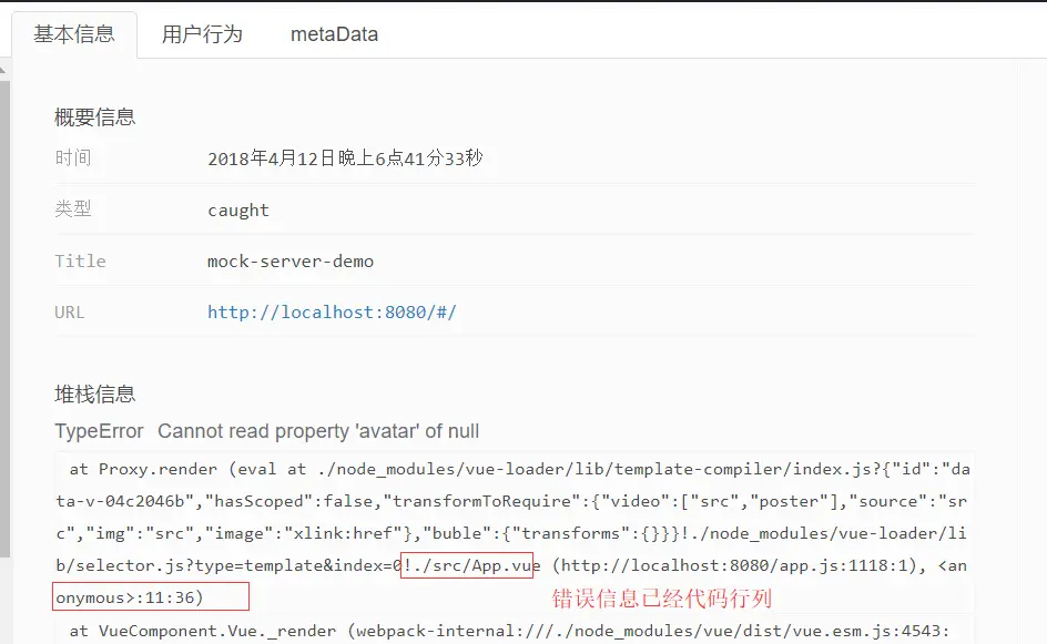 开发人员额外传送至平台的信息,有web版本号,渲染错误的组件名称,更多信息开发人员都可以自定义