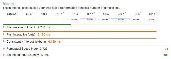 Perceptual Speed Index——这是页面展示可见部分所需时间的平均值。它以毫秒为单位并且取决于窗口的大小。应该尽量让它减少到1250毫秒以内。