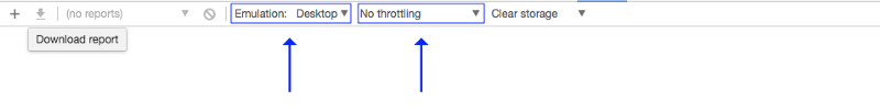 很好。只需要等待一会儿,我们就完成了性能检查并且把它当成衡量指标来提升网站的性能。Audits会把网页视图更改成移动版,对此你不需要担心有什么负面影响,因为这是Chrome的默认行为。另外,我强烈建议你使用Canary版Chrome的audits。Canary版能够监控桌面端网页,并且新增了一个节流的选项。就像下面这张图一样。