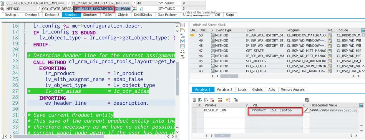 CRM WebUI and Hybris的Product页面标题实现 已注销 2018-04-14 129 阅读1分钟 CRM Controller只需实现IF_BSP_WD_HISTORY_STATE_DESCR~GET_STATE_DESCRIPTION方法: 上图在ABAP调试器里观察到的这个字符即出现在最终页面上。 Hybris Product明细页面的pageTitle字段绑定到Model的{pageTitle}字段上: 调试器里观察到的pageTitle的值: 最后的效果: 要获取更多Jerry的原创技术文章,请关注公众号"汪子熙"或者扫描下面二维码: