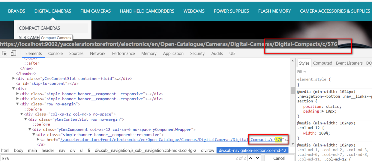 https://localhost:9002/yacceleratorstorefront/electronics/en/Open-Catalogue/Cameras/Digital-Cameras/Digital-Compacts/c/576