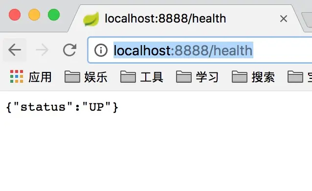 通过上面表格,我们可以在浏览器上访问http://localhost:8888/health可以看到如下图: