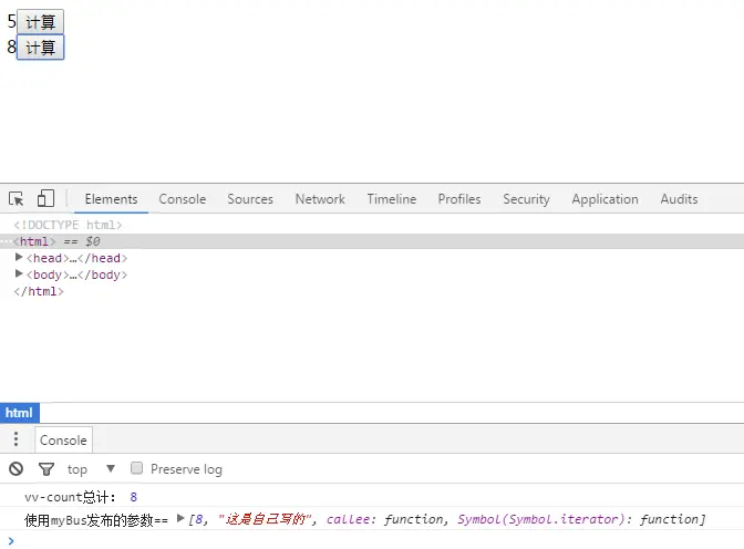 bus.$emit("vv_count", this.count,'这是使用vue的')