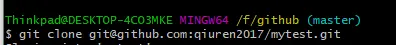 git安装和使用,ssh方式和https方式下载项目,自行问度娘。 git clone git@github.com:qiuren2017/mytest.git