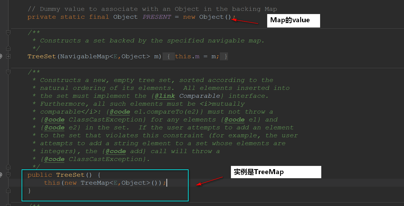 从顶部注释来看,我们就可以归纳TreeSet的要点了: