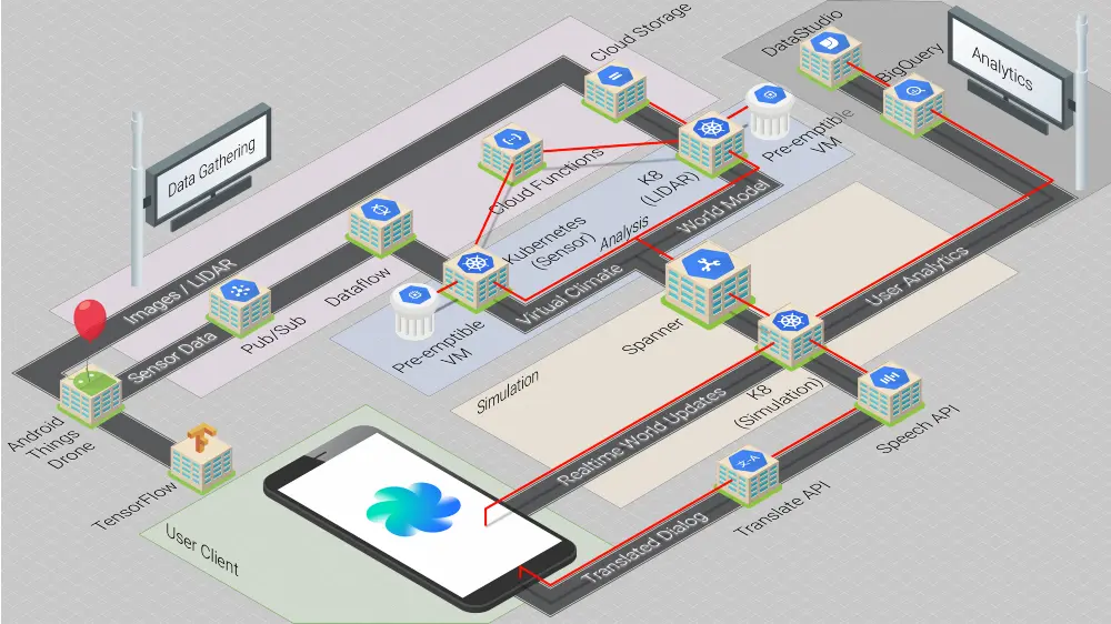 Reto 的方案专注于使用数百万个无人机获取实时传感器数据,创建一个对现实世界的虚拟克隆。他的虚拟空间本质上是和现实世界联系在一起的,包括几何形状和当前的天气条件。