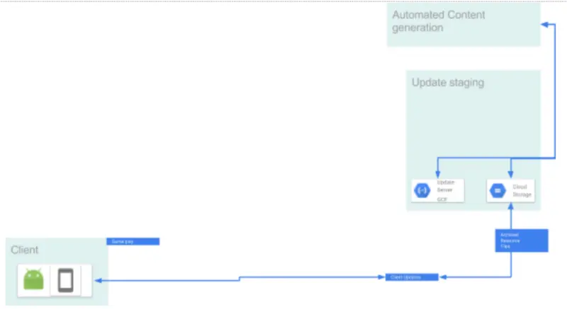 随着时间的推移,本地缓存将会失效,或者需要将更新推送给用户。为此,我们制定了更新和分期流程,客户可以在登录或是重新进入他们最近访问的区域时接收更新的环境数据。