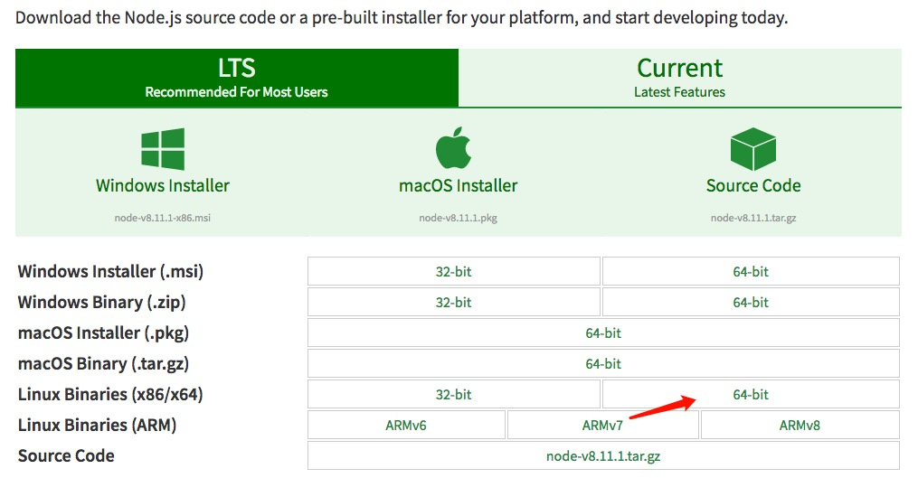 $ wget https://nodejs.org/dist/v8.11.1/node-v8.11.1-linux-x64.tar.xz