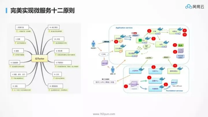 第二张图是微服务的 12 要素以及在网易云的实践。