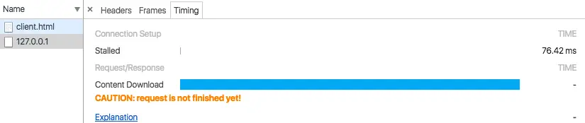 我们注意到,为了避免缓存,Cache-Control 特别设置成了 no-cache,为了能够发送多个response, Connection被设置成了keep-alive.。发送数据时,请务必保证服务器推送的数据以 data:开始,以\n\n结束,否则推送将会失败(原因就不说了,这是约定的)。