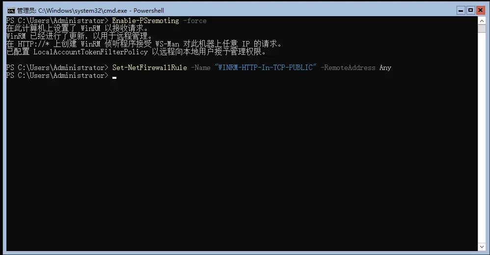 - 在被管理的机器上,运行以下PowerShell命令: