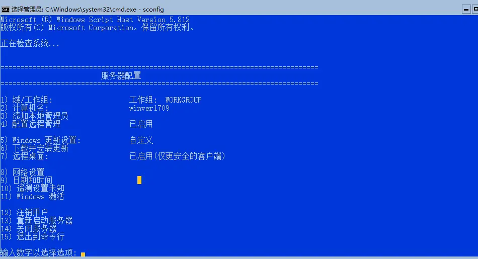 这个工具在Server Core诞生的那一天就有。不过现在被隐藏了。在命令行中输入sconfig就能出现此命令。能满足基本需要,功能不是很强大。
