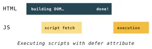 这两个属性都告诉浏览器,他可能会在后台加载脚本时继续解析HTML,然后再在加载后执行脚本,这样脚本下载不会阻止DOM构建和页面呈现。用户可以在所有脚本完成加载之前看到页面