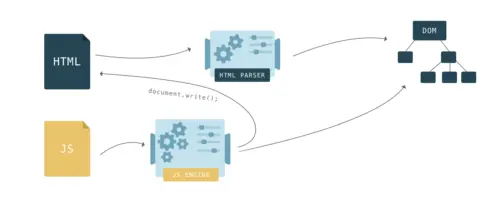 在过去,为了执行脚本,解析必须暂停。他只会在JavaScript引擎从脚本执行代码后再次启动。