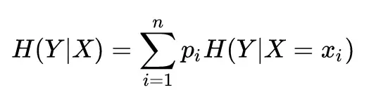 随机变量X给定的条件下,随机变量Y的条件熵H(Y|X)定义为: