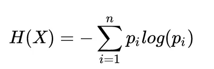 熵表示随机变量的不确定性,熵值越大表示随机变量含有的信息越少,变量的不确定性越大。 随机变量 X 的熵的表达式为: