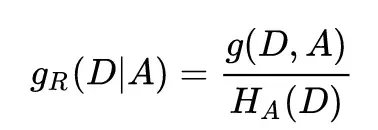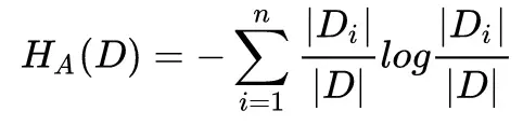 特征 A 对训练集 D 的信息增益比定义为其信息增益与训练集 D 关于特征 A 的值的熵之比,即