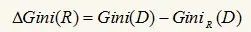 对于离散或连续值属性 A 的二元划分导致的不纯度降低为: