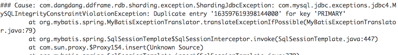 2018年1月26日下午,业务方信贷小组的同学反馈服务执行数据库插入操作出现异常,异常信息显示数据库主键出现重复: