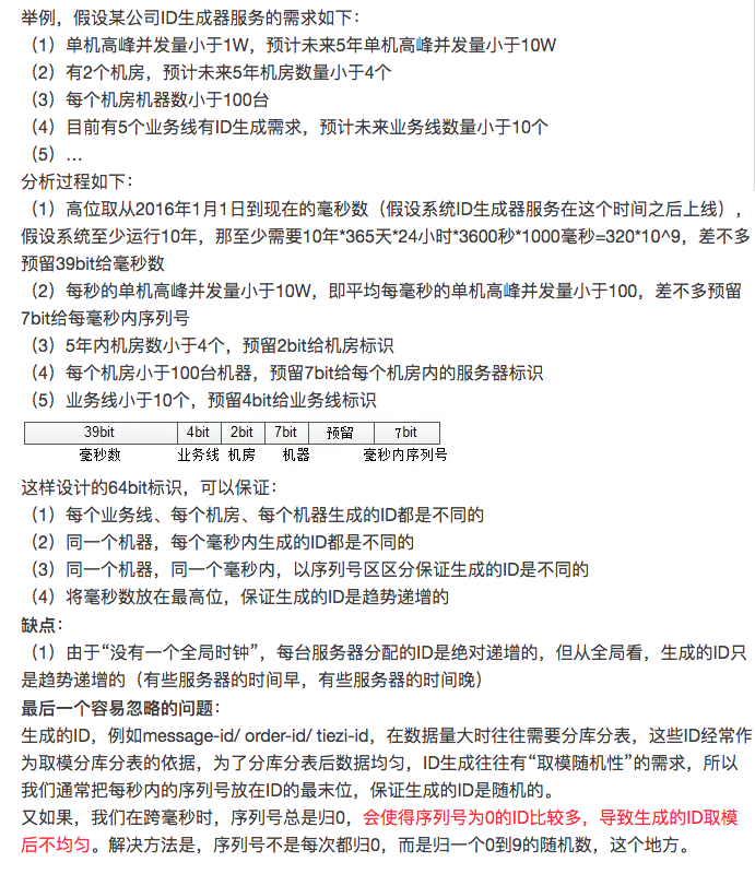 目前业界使用当当亮哥的sharding-jdbc,一般都会采取其内置的Snowflake算法,关于二次改造我这里列举一个58沈剑在《架构师之路》系列中提出的例子。