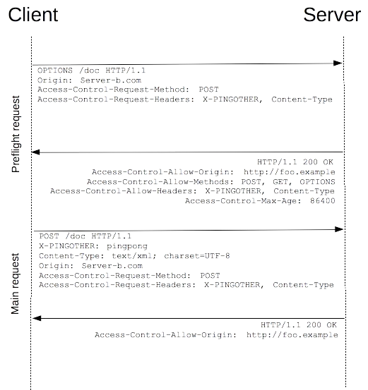 with certain MIME types), the specification mandates that browsers "preflight" the request, soliciting supported methods from the server with an HTTP