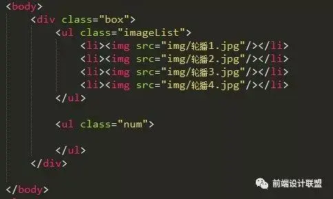 然后在插入图片的后面添加一个空的无序列表,作为轮播图中下方的小点。