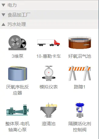 至于树组件,树组件和 graphView 拓扑组件共用同一个 dataModl 数据容器,本来只需要创建出一个树组件对象,然后将其添加进布局容器中即可显示当前拓扑图形中的所有的数据节点,一般 HT 会将树组件上的节点分为几种类型进行显示,ht.Edge、ht.Group、ht.Node、ht.SubGraph、ht.Shape 等类型进行显示,但是这样做有一个问题,如果创建的节点非常多的话,那么无法分辨出那个节点是哪一个,也就无法快速地定位和修改该节点,会给绘图人员带来很大的困扰,所以我在 treeView 的 label 和 icon 的显示上做了一些处理: