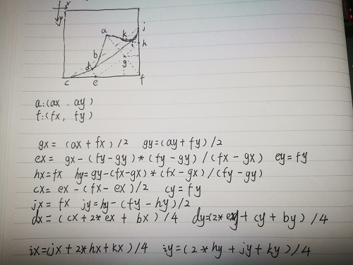 d.x = (c.x + 2 * e.x + b.x) / 4;