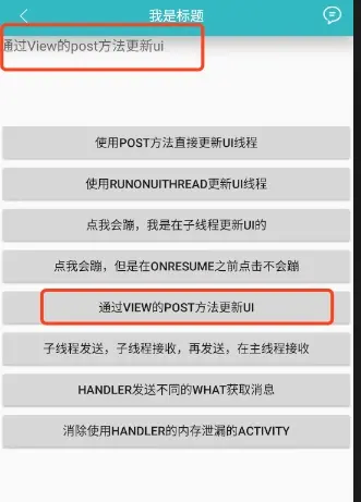 使用 Handler 的 post() 方法更新 UI,是通过 post 出一个 Runnable 的方式,代码如下: