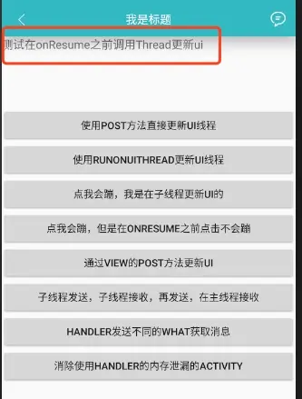 // 写在OnResume之前执行点击事件的话,可以在子线程更新UI线程