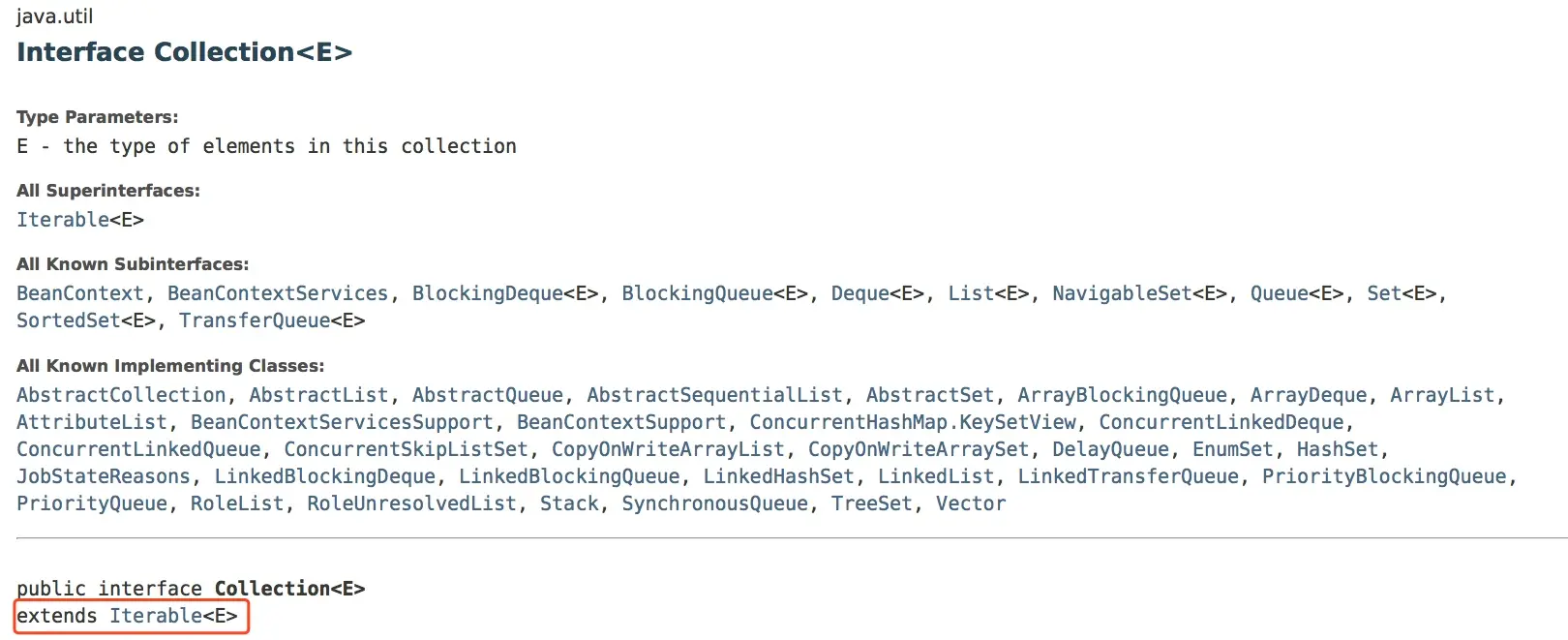 可以看到,这个接口继承了 Iterable 这个接口,那么这个接口是干啥的呢?我们进去看一下: