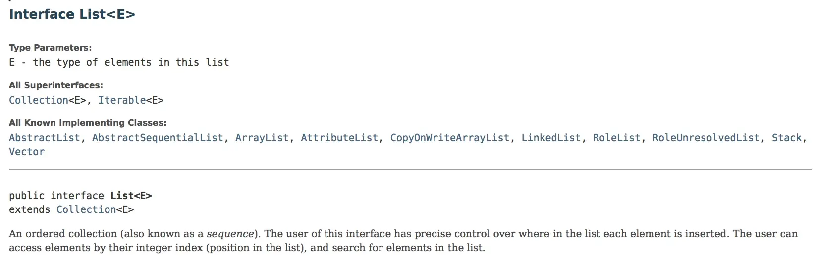 最下面的那段官方说明: 该接口的用户对插入的每个元素的位置有精确的控制。用户可以通过其整数索引(列表中的位置)访问元素,并搜索列表中的元素。