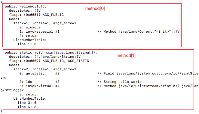方法表可以对照着下面两张图看(注意只有常量池是从1开始计数,包括前面的字段和接口表也都是0开始计数):