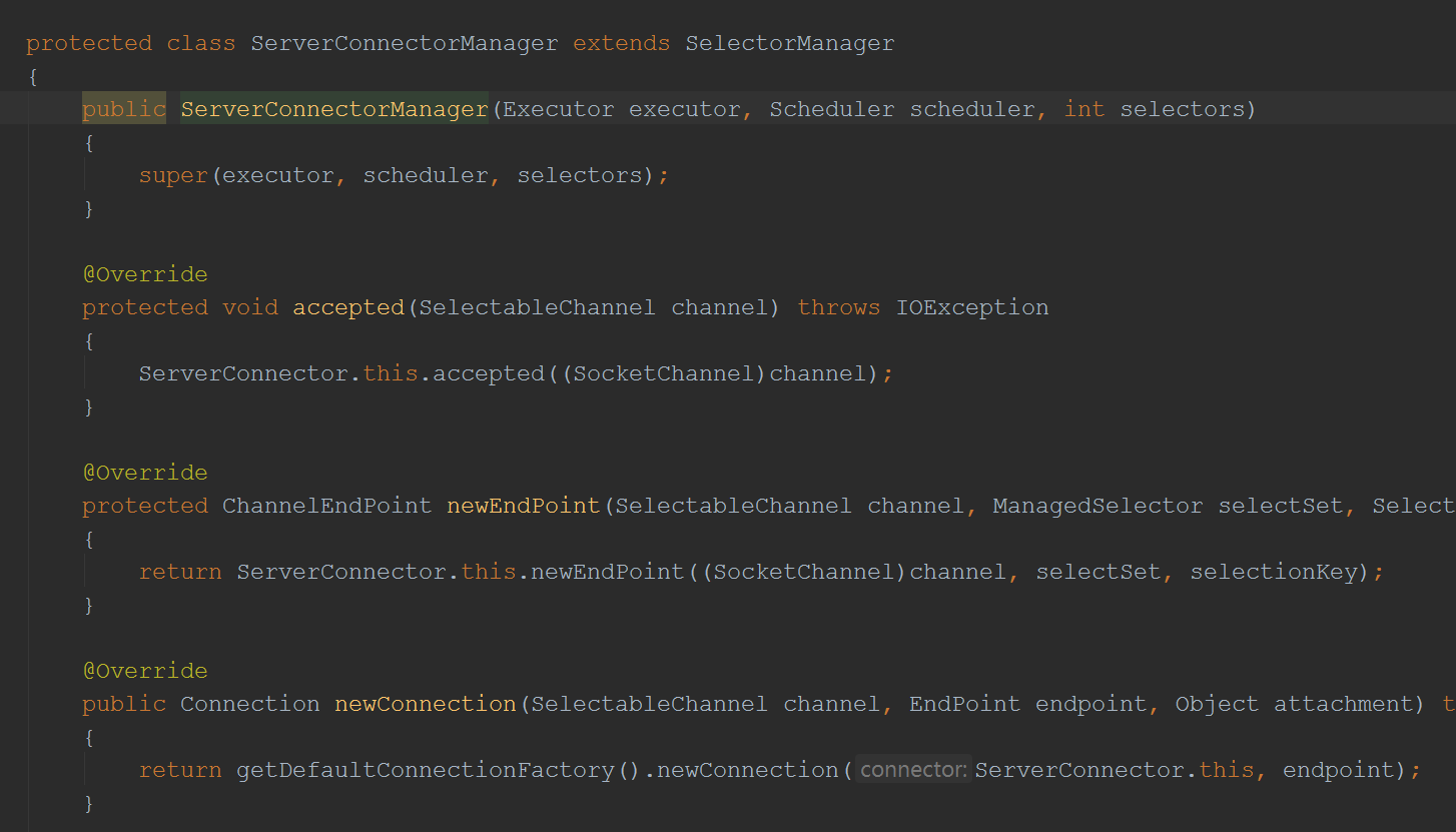 就是创建一个ServerConnectorManager对象,ServerConnectorManager继承了SelectorManager类: