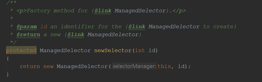 到此,我们先来总结一下,就是Acceptor接收到一个connect请求后,会封装出一个Accept对象,这个对象实现了SelectorUpdate接口,然后把这个Accept对象塞到ManagedSelector的一个ArrayDeque里面,其实这里就是体现上文中的那个图,接收到connect请求后,封装好channel,交给Selector去monitor它的状态,就是说接下来的事就由Selector来handle了,在看ManagedSelector的doStart方法前,我们先来回顾一下它的构造函数: