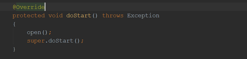 它先调用open方法打开ServerSocketChannel,这个我在系列(6)里面有详细剖析。我们这里关注一下它调用的父类的doStart(AbstractConnector)方法: