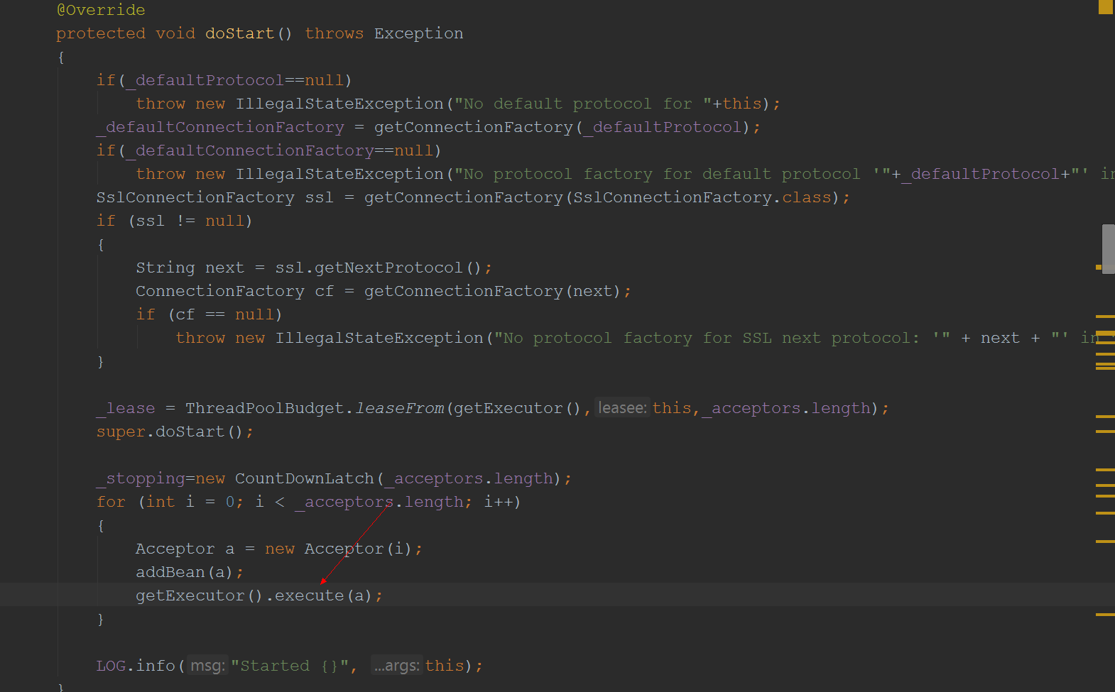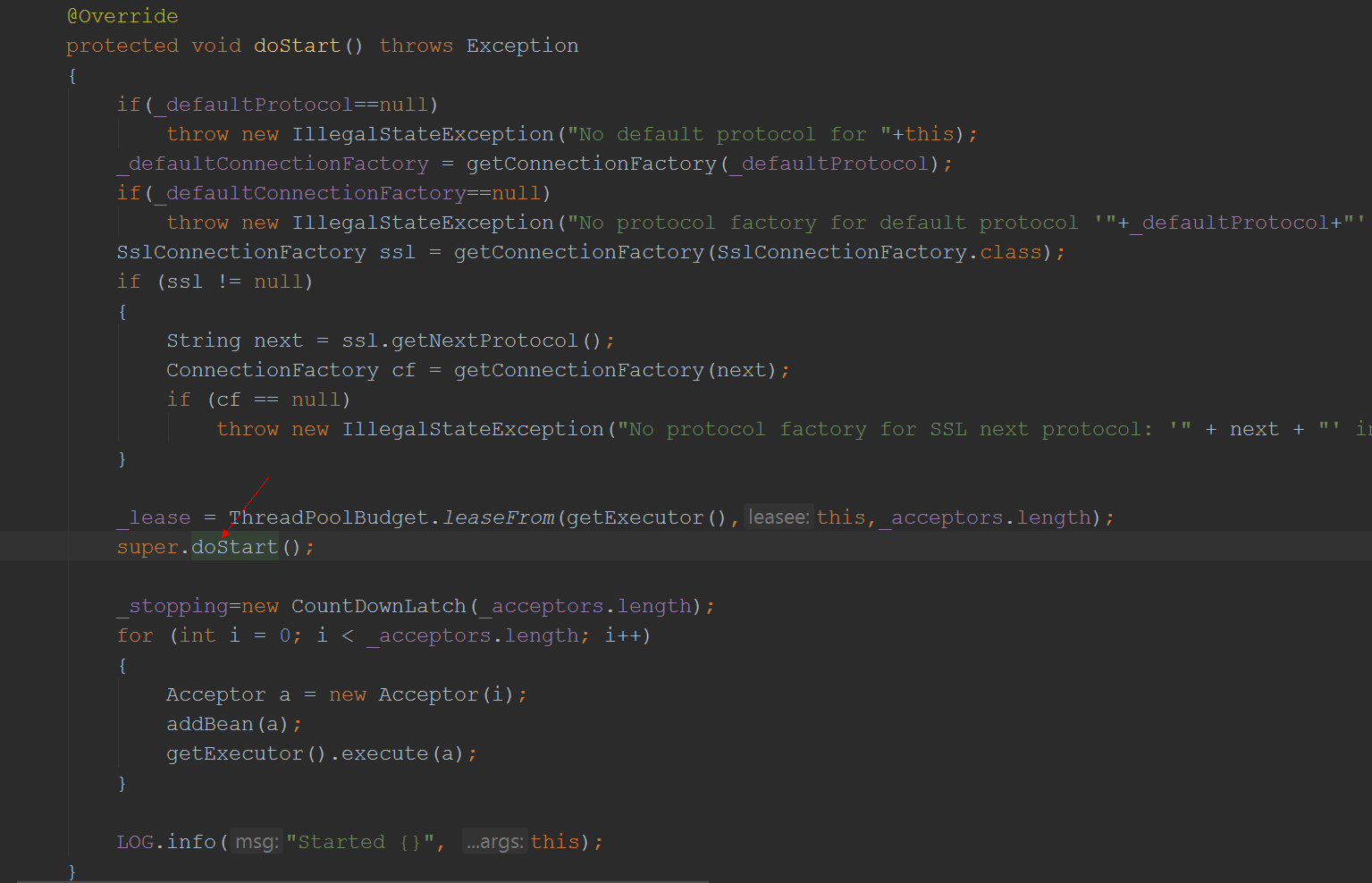 此时我们先回过头去看一下ServerConnector的doStart方法: